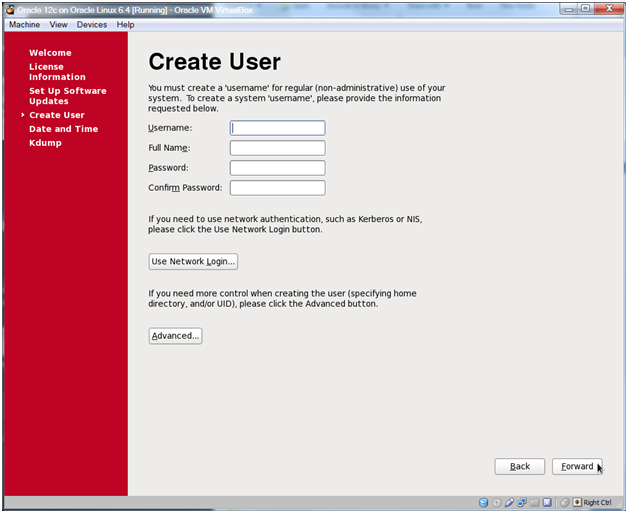 If you decide to create a non-root user here then you’ll have an additional choice at the login screen for the system. You should not create the oracle user here as we’ll be using a specific package from Oracle to create the oracle user.