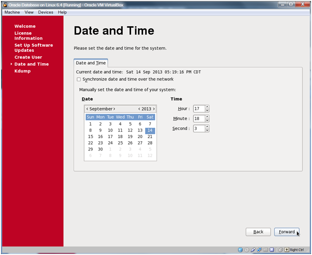 Set your date and time or choose Synchronize date and time over the network and click Forward.