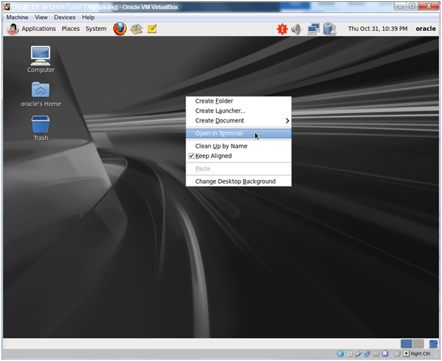 Right-click the desktop and select Open in Terminal to open a new terminal window.