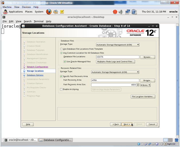 Change Database File Locations from +FRA to +DATA.