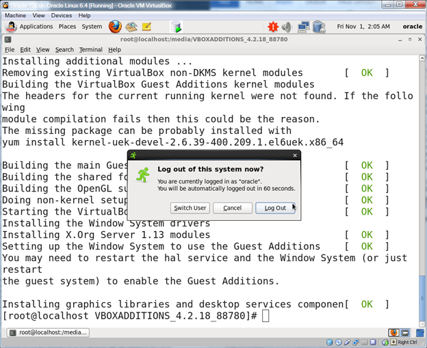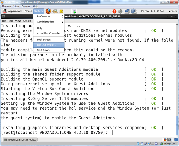 Oracle Database 12c on Oracle Linux 6 – Step 30: Install the VirtualBox guest additions in the VM