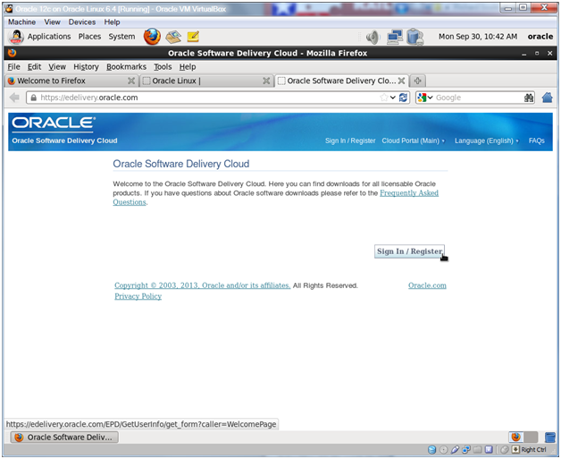 Go to http://edelivery.oracle.com and click Sign In / Register.