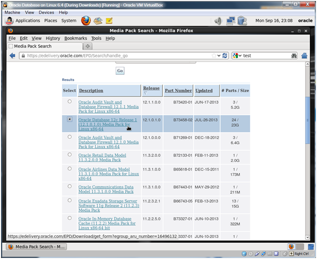 Click the Oracle Database 12c Release 1 (12.1.0.1.0) Media Pack for Linux x86-64 link.