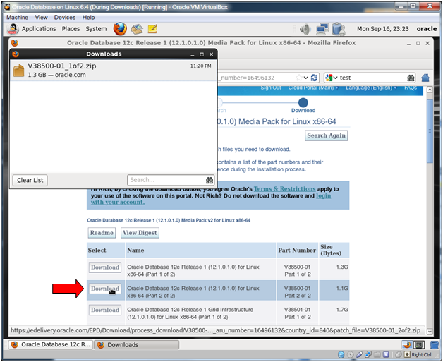Click the Download button for Oracle Database 12c Release 1 (12.1.0.1.0) for Linux x86_64 (Part 2 of 2).