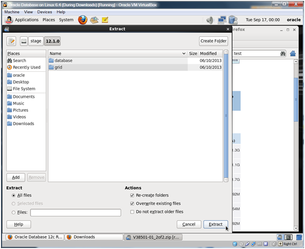 Again, navigate to the /stage/12.1.0 directory and click Extract.